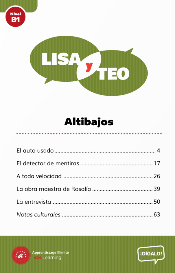 Suivez les aventures de Lisa et Théo ainsi que leur famille et leurs amis dans ce recueil de 5 histoires "high-low"*. Le texte est écrit sous forme de dialogue pour modéliser des situations de communication authentique. Version audio incluse. Niveau B1.