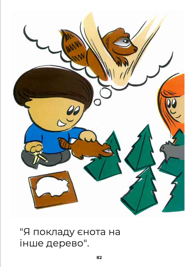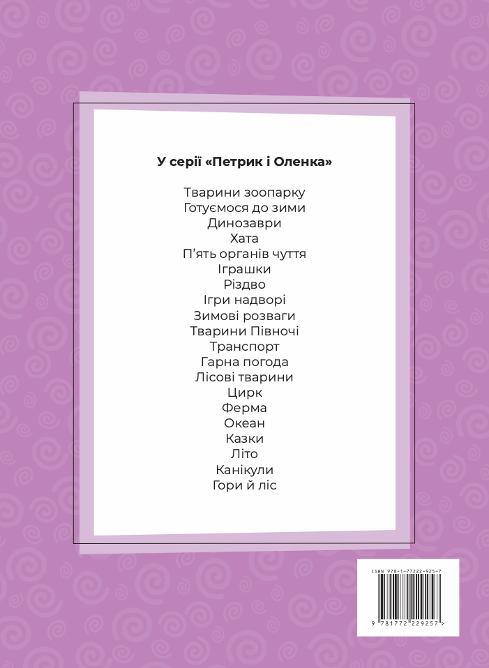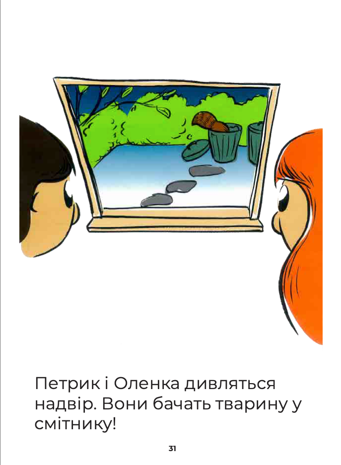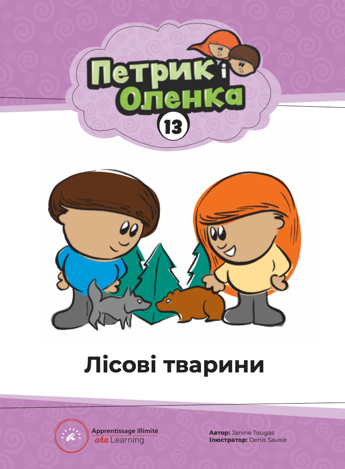 Through short, easy-to-follow sentences and colorful illustrations, children follow Петрик and Оленка as they interact with forest animals.