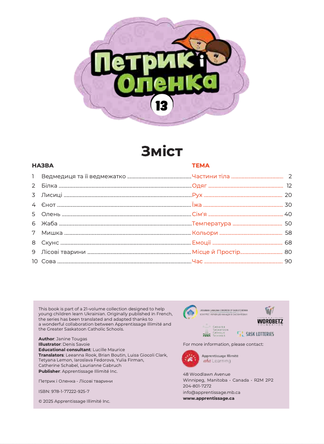 Originally published in French and loved by little French learners for more than 30 years, all 20 books have been carefully translated and adapted into Ukrainian and are ideal for classrooms, language programs, and families supporting early bilingual or Ukrainian-language learning.