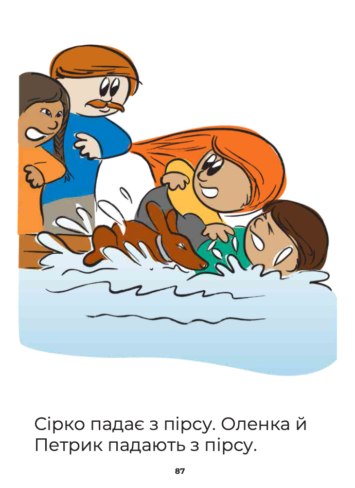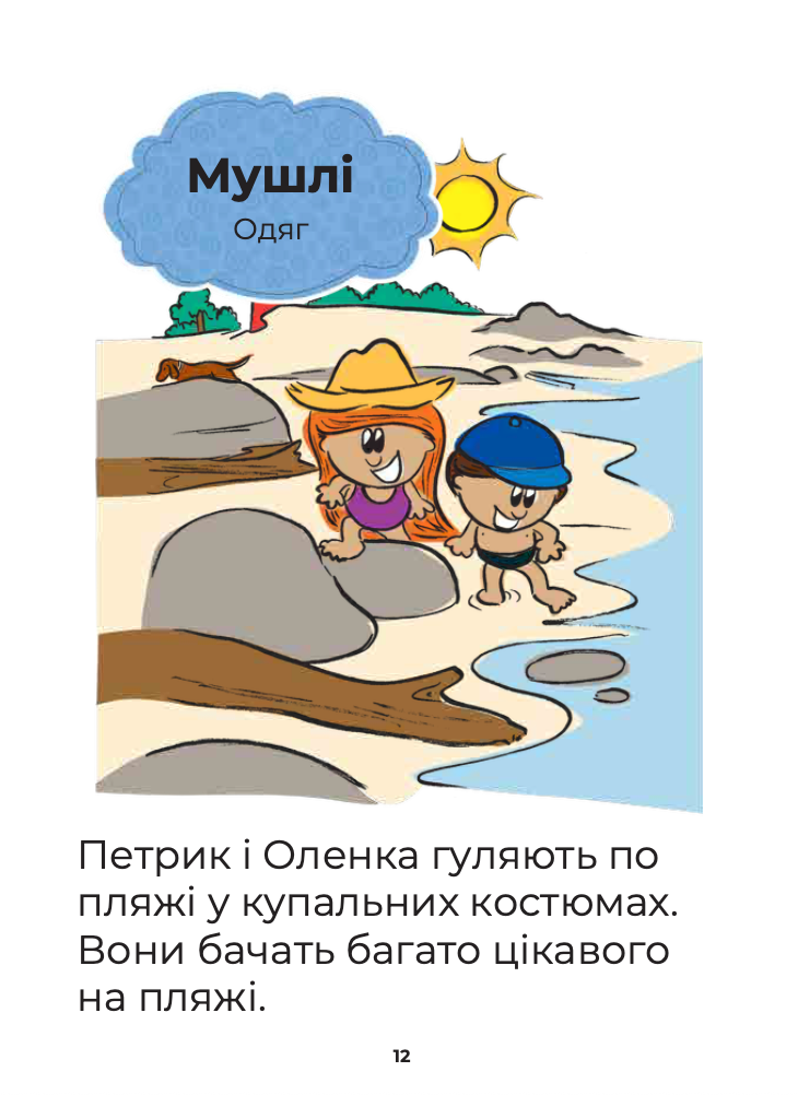 Through short, easy-to-follow sentences and colorful illustrations, children follow Петрик and Оленка as they interact with sea animals.