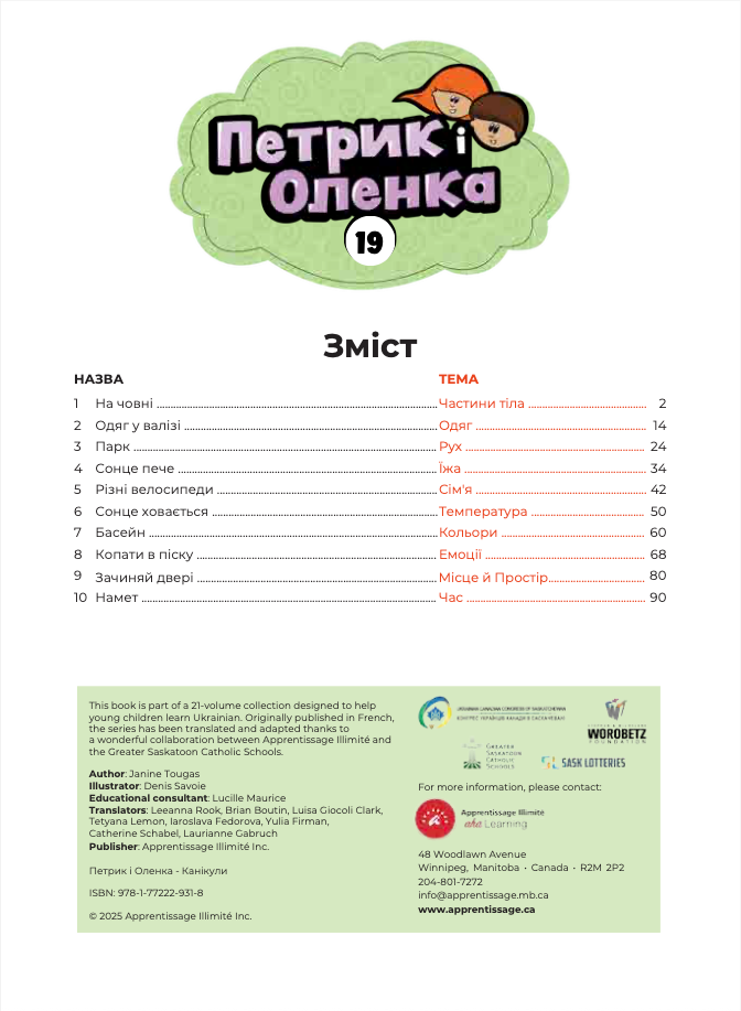 Originally published in French and loved by little French learners for more than 30 years, all 20 books have been carefully translated and adapted into Ukrainian and are ideal for classrooms, language programs, and families supporting early bilingual or Ukrainian-language learning.