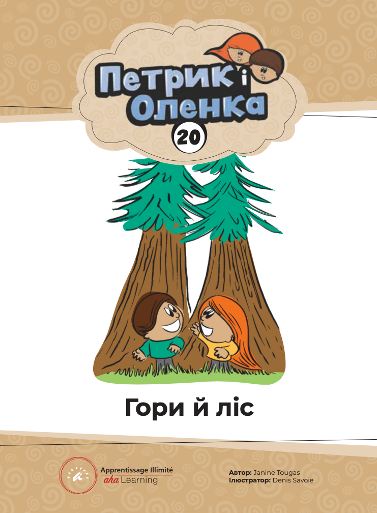 Петрик і Оленка - Гори й ліс is a large-format educational picture book designed to support early language learning through simple stories, repetition, and engaging illustrations.