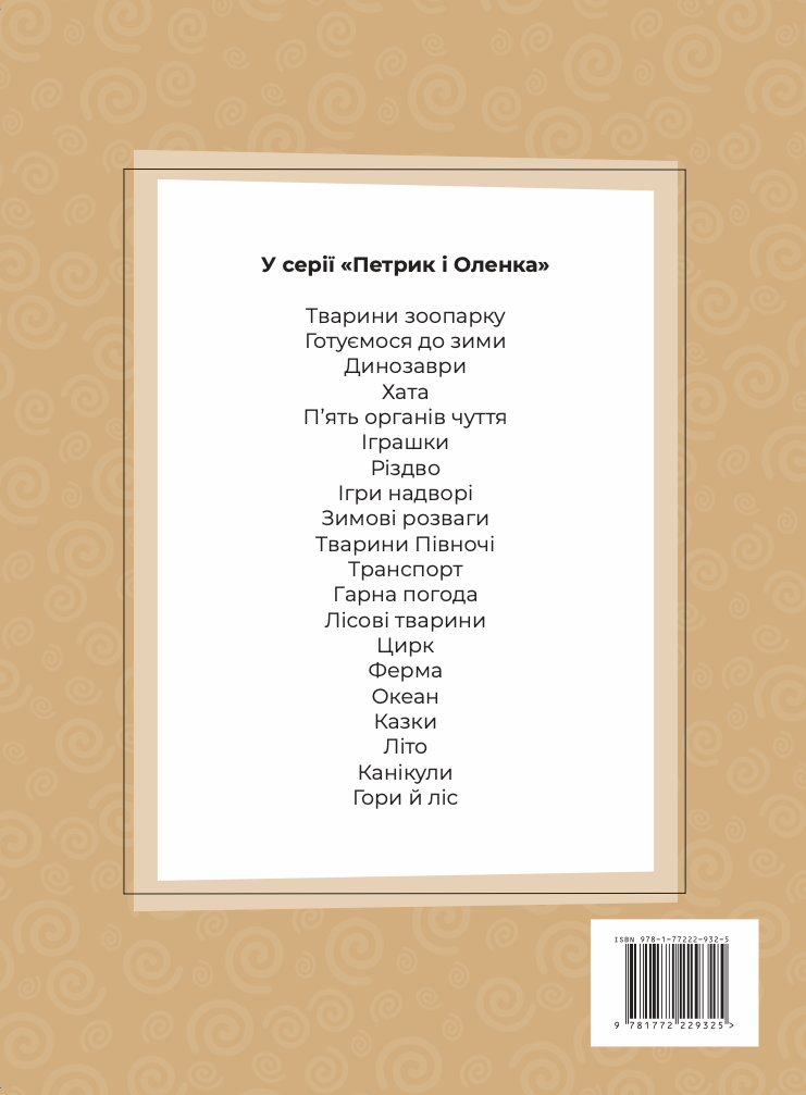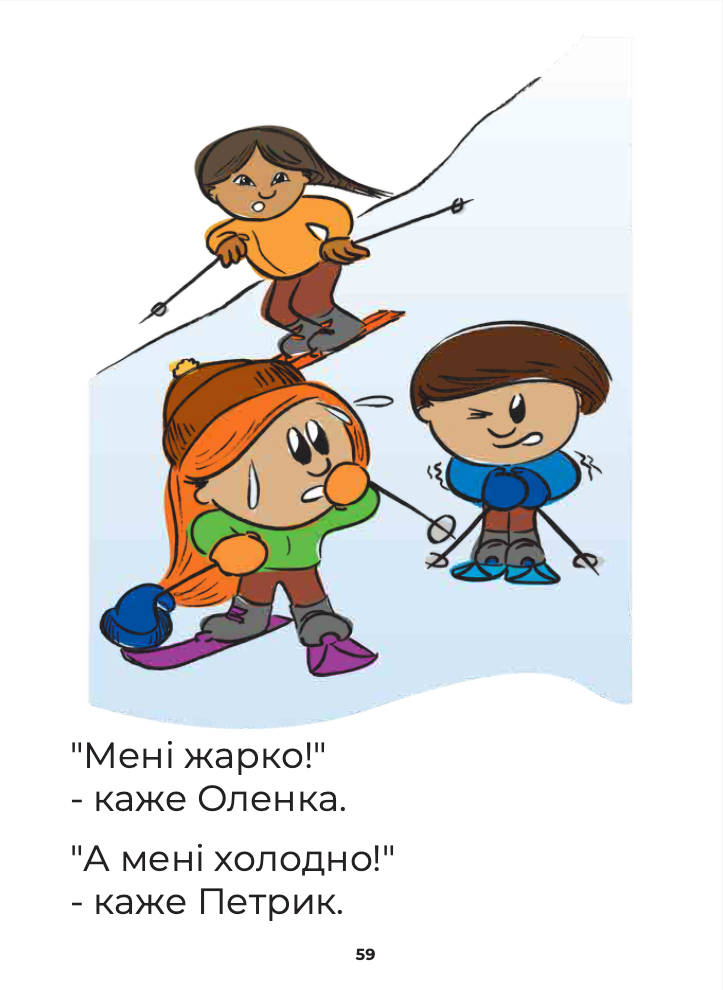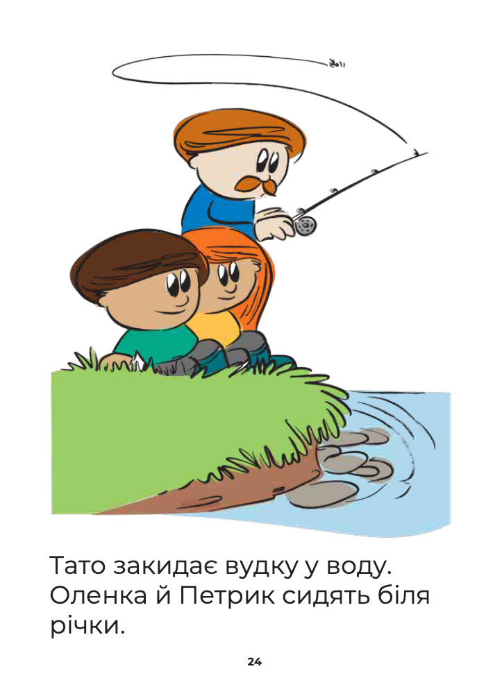 Through short, easy-to-follow sentences and colorful illustrations, children follow Петрик and Оленка as they participate in different outdoor activities.