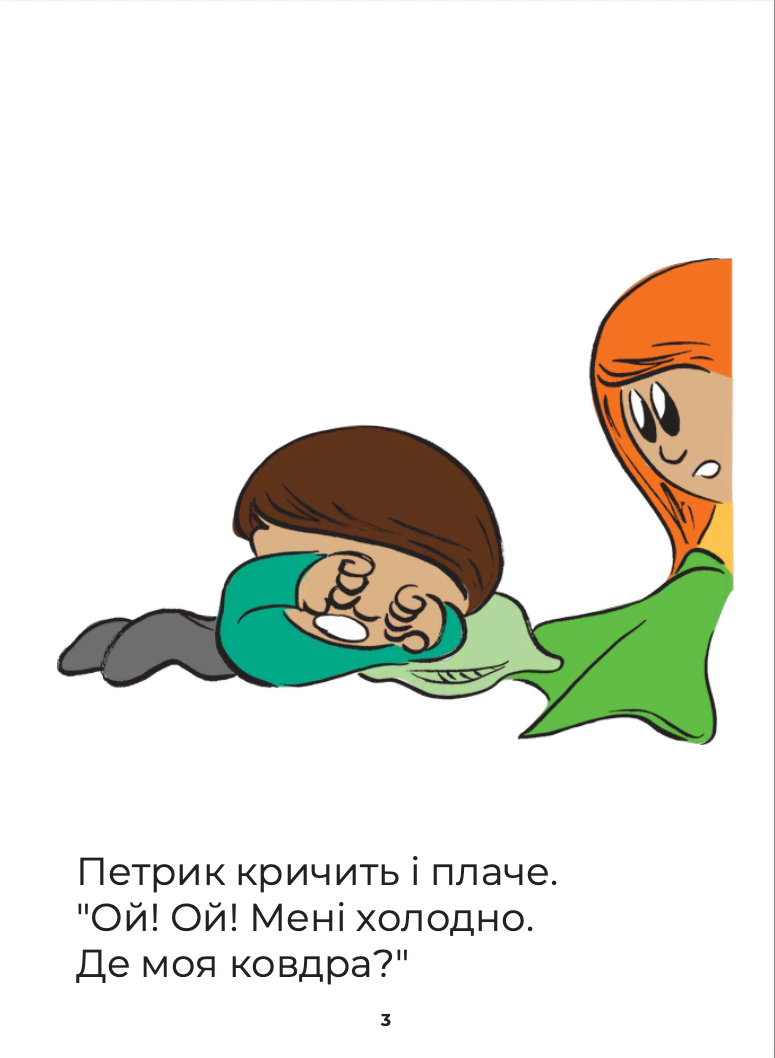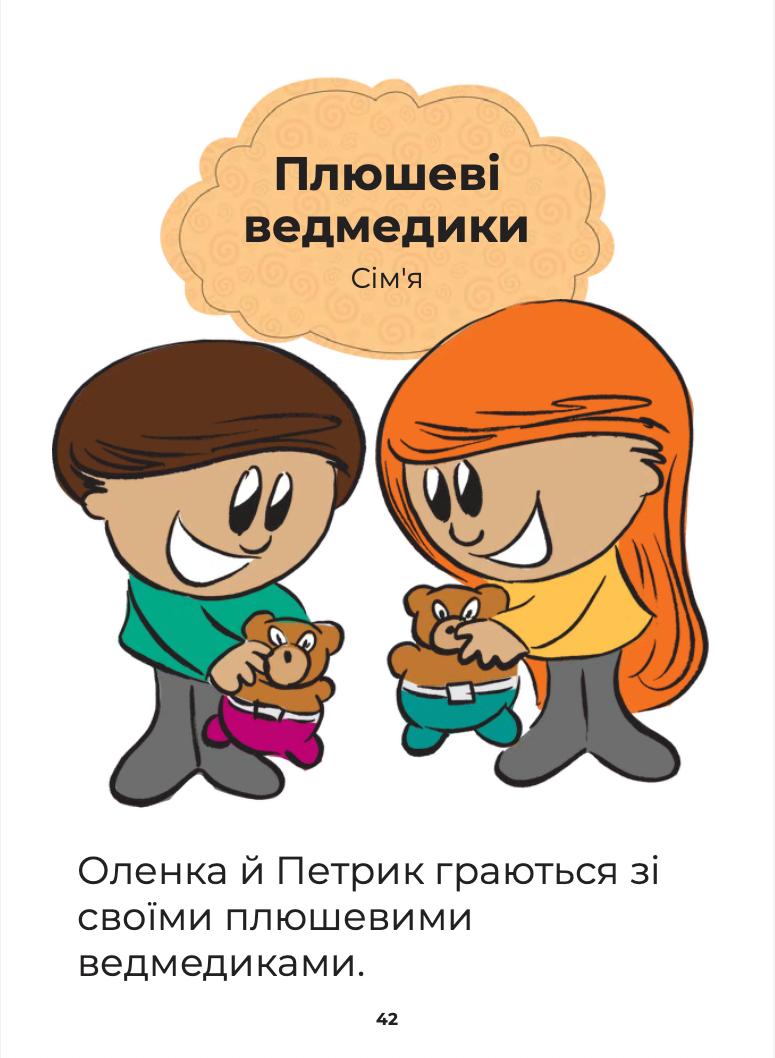 Through short, easy-to-follow sentences and colorful illustrations, children follow Петрик and Оленка as they interact with objects inside their house.